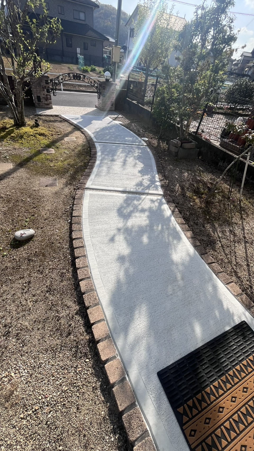 たつの市 U様邸 ー想い入れのある外構をリフォーム アプローチ Before After 施工ポイント 経年によるタイルの浮きと色褪せがあり、つまずきの心配も。デザインはそのままに、土間コンクリートと洗い出しを施工。 お気に入りのインターホン台の木部材が腐食していたので、耐久性のあるウリン材に交換修理もし、大変喜んでいただけました。 施工実績一覧へ