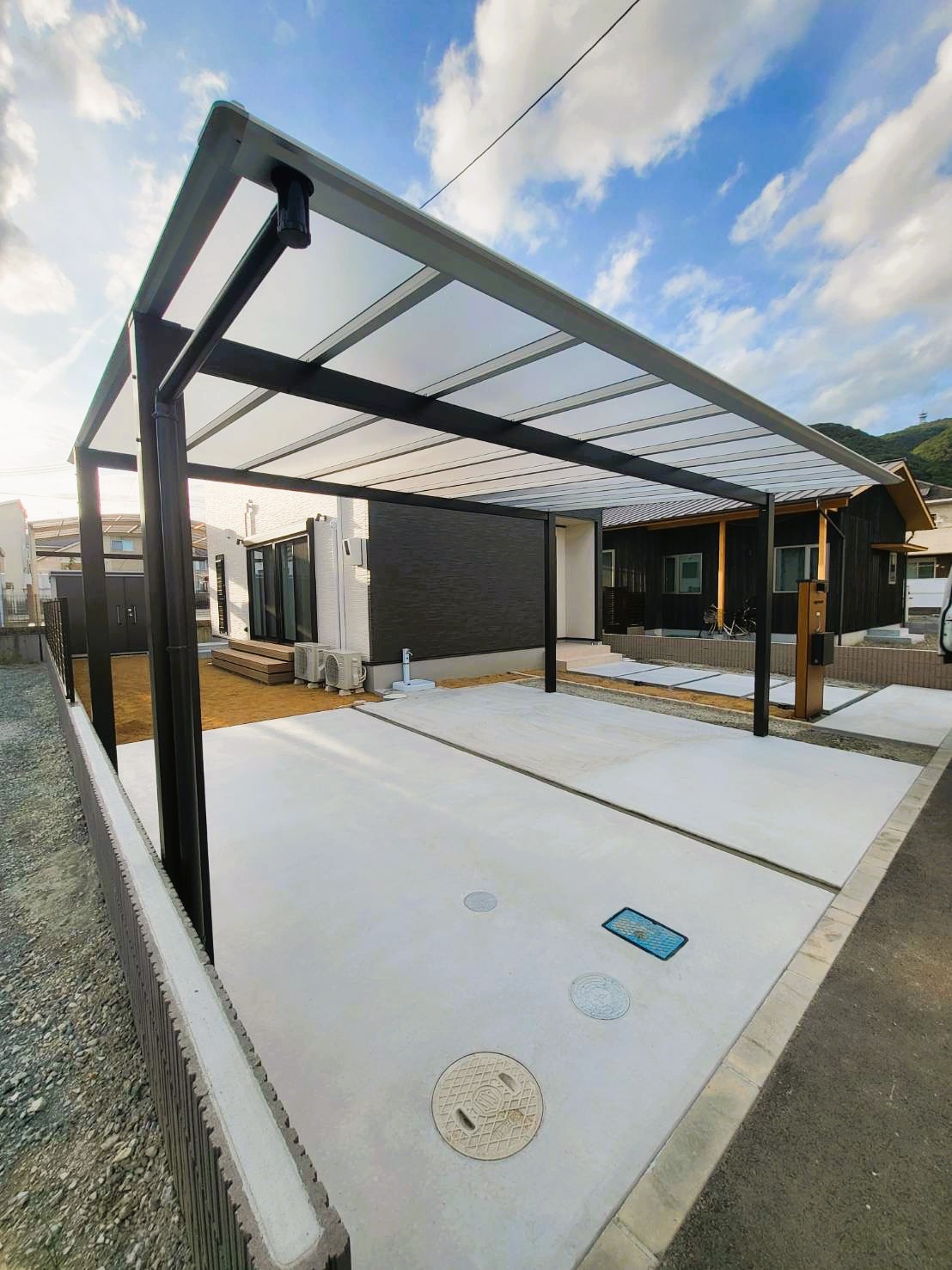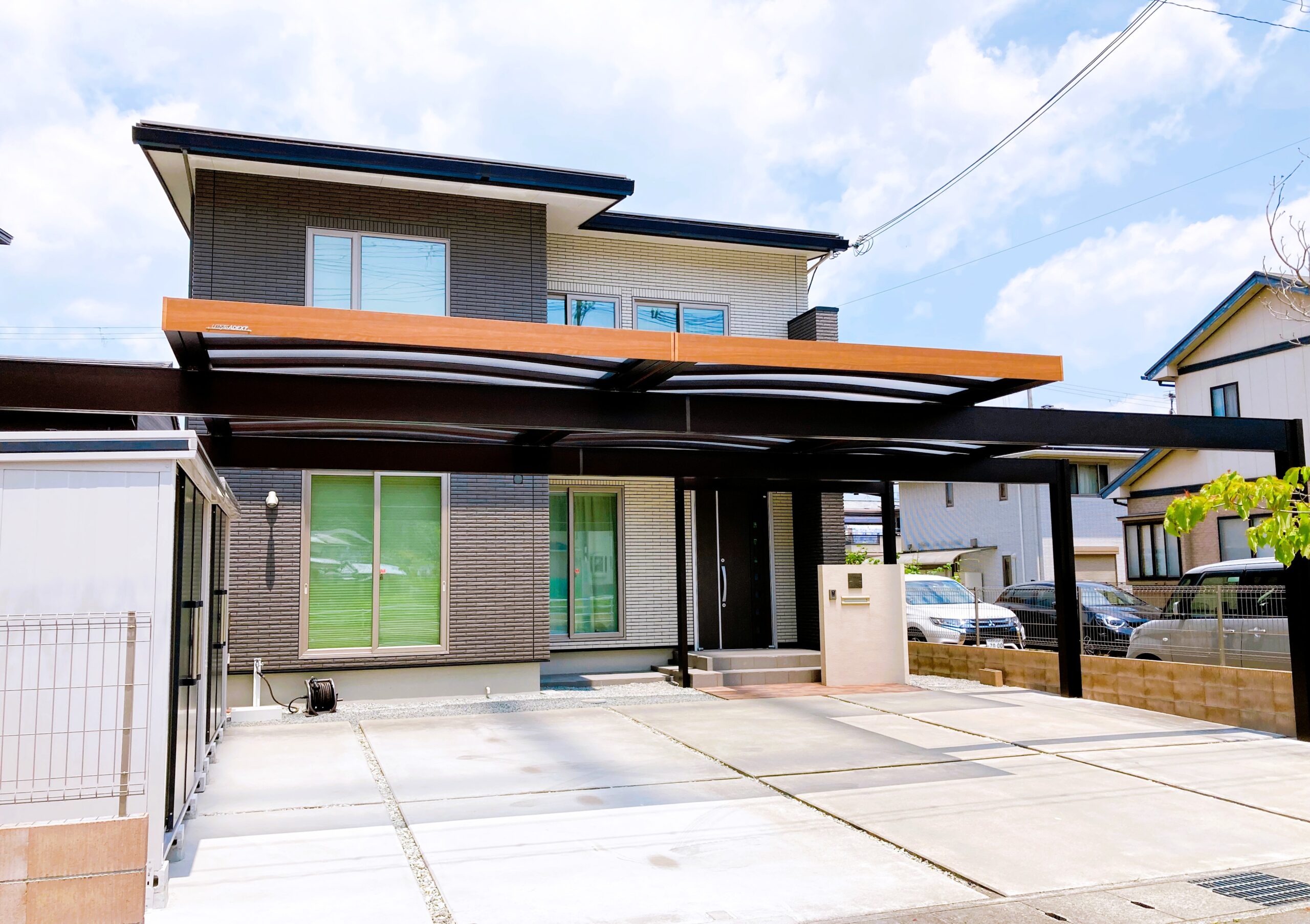 ブラックカーポートで洗練されたお家に